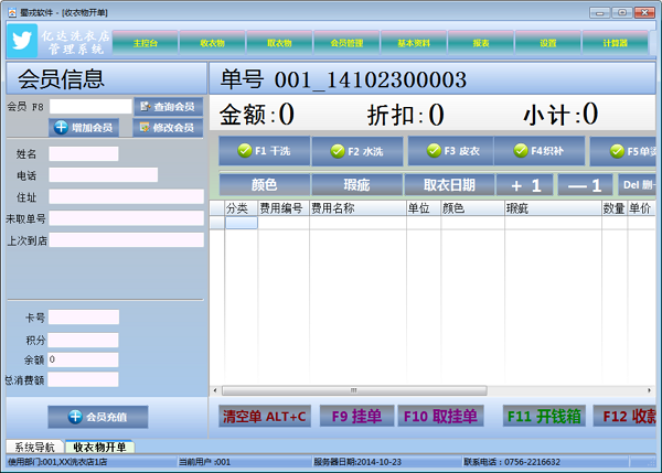 亿达洗衣店管理系统真正好用的洗衣店管理软件,不用打字可以完成日常收衣服和取衣功能,方便快捷; 收款欠款管理和统计,完善的会员管理功能。