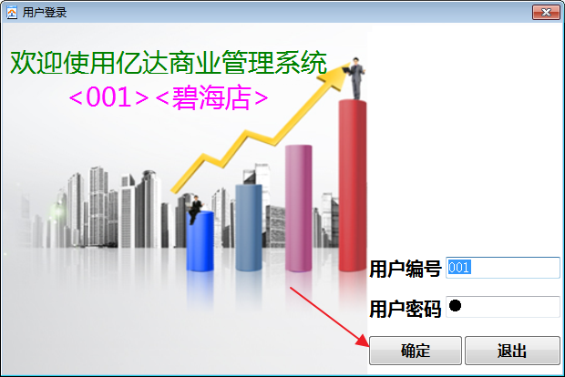 下载安装后,打开应用程序,直接点击确定进行登录。(用户编号001 用户密码1)