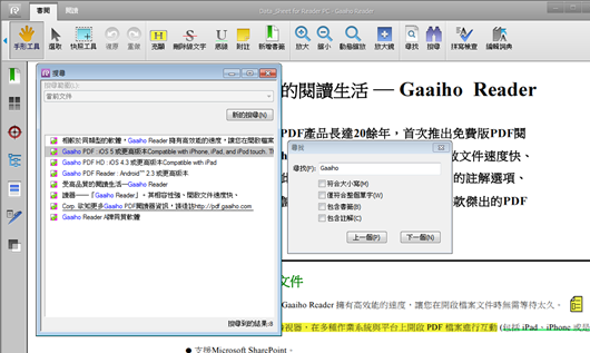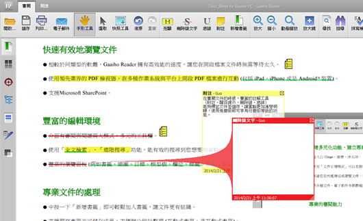免费版的PDF 阅读软件——Gaaiho Reader,其兼容性强、打开文档速度快、显示效果好,此外,还有比其它同类软件更丰富的注释功能、填写表单并保存的功能、快捷添加书签等,是真正实用的一款免费PDF 阅读软件。