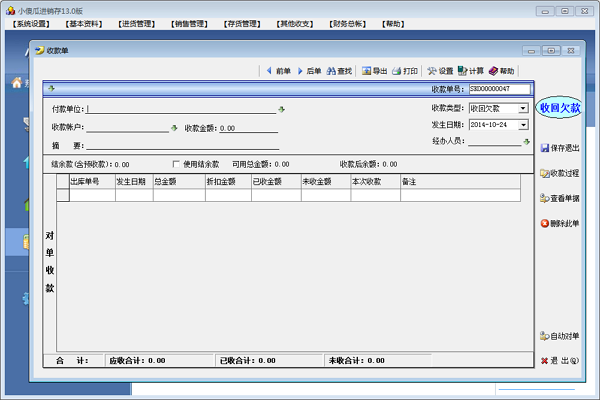 2.当销售时就收到了现款。那么在填单时。就可以在本次收款里填入,如果是赊销,那本次收款就不填金额,以后收到款时用收款单处理;