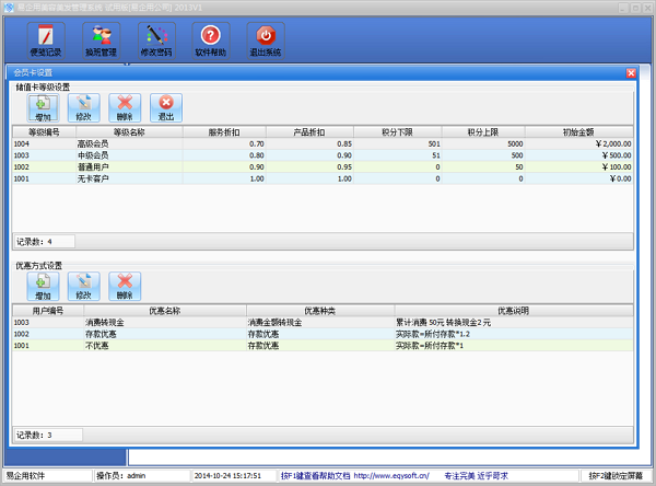 会员卡设置:可以根据自己的需要设置不同的优惠方式,灵活简单。