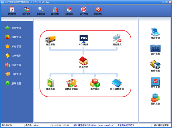 易企用超市进销存管理系统是一款专业的超市进销存系统,其中包含超市商品销售管理系统 ,超市库存管理系统,超市收银系统等子模块。软件界面设计简洁,美观,其人性化的软件流程,使普通用户不需培训也能很快掌握软件操作使用方法,上手极易。强大报表与集成查询功能是本软件的最大特色,所有功能在用户需要的使用地方自然体现,不用打开多个窗口重复查询。易企用超市进销存系统广泛适用于商场,超市,门店等用于超市进销存管理,库存管理,财务管理,收银管理,员工管理等场合,是您企业进行信息化管理的理想工具。