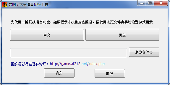 3.运行工具,可选择一键切换语种,如果一键切换失败,请手动切换,选择游戏目录 文明:太空 RELOAD光盘版游戏根目录,再点击确定即可切换成中文