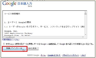今回はWindows Vista SP1を使っているパソコンで試用してみました。まずはインストールから。「Google 日本語入力」公式サイトにアクセスし、ボタンをクリック。