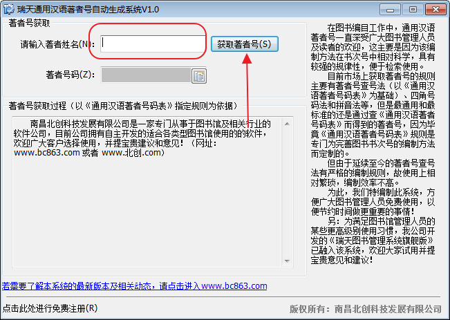 1、下载解压后,安装应用程序。输入著者姓名,可以是人名,也可以是书名,然后点击【获取著者号】