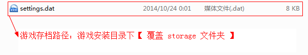 游戏存档路径:游戏安装目录下【 覆盖 storage 文件夹 】