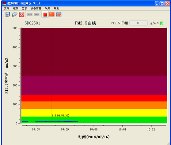 方型号为SDC2501相关的PM2.5检测仪或SDC2503和SDL301相关的空气质量检测仪,来显示PM2.5和或甲醛的值,并绘制动态曲线。
