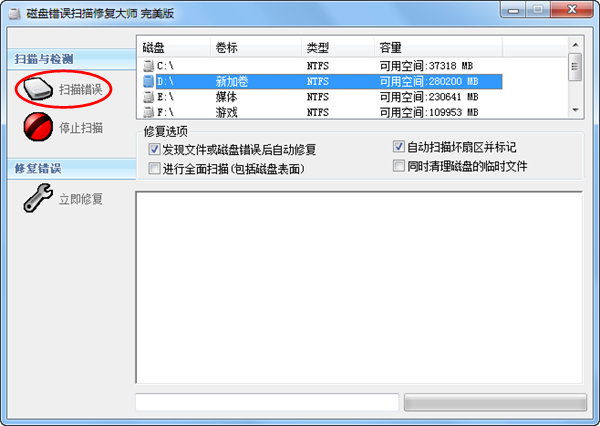 2、选择磁盘分区进行扫描