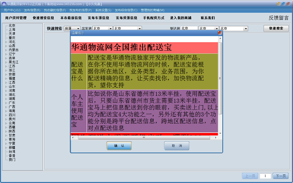 华通配货软件(物流配货软件)是一款非常好用的物流配货软件。软件功能强大,使用方便,快捷。您可以轻松的发布,查找您需要的车源信息,货源信息及物流公司信息,并能快捷的查看联系方式,或者进行操作简便的网上聊天工具进行沟通!