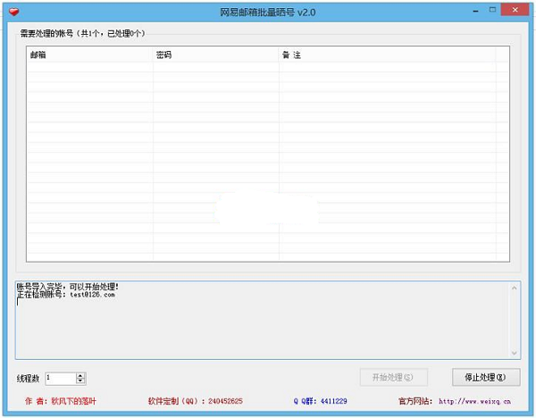 网易邮箱批量晒号软件(网易邮箱晒号工具)是一款绿色免费的由网友秋风下的落叶制作的网易邮箱晒号工具。软件功能强大,主要用于批量验证网易邮箱账号密码是否正确,目前支持126/163/yeah三种格式的邮箱账号,使用简单、方便、快捷。