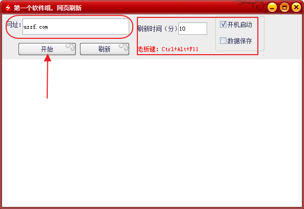 2、输入相关网址,设置刷新时间以及开机启动、数据保存等功能,点击【开始】即可