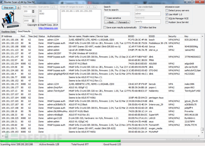 本软件善于寻找和确定不同的设备,发现大量已知的路由器或服务器,最重要的是把其中有用的信息,特别是无线网络的保护方法的特点:接入点的接入点名称(加密),接入点(SSID)和密钥(密码)(关于广域网的连接也方便获取信息时,扫描局域网)和输出的牌子和路由器型号。