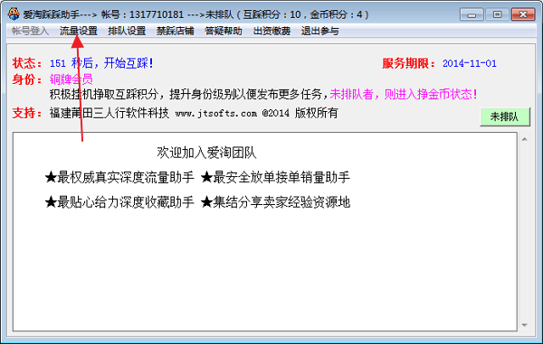 4、排队设置:流量设置完成后进行排队设置,然后点击【参与排队】