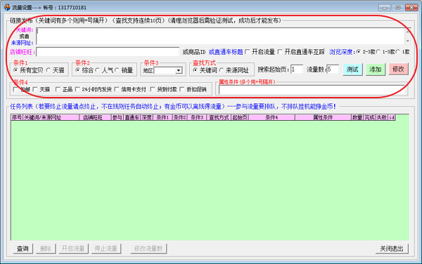 流量支持关键词、关键词链接、网址链接搜索方式,使用简单。先进的人工智能技术应用,从搜索、点击、浏览全部过程有效展现,是一款顶尖的引流好助手,界面简单,设置容易,是淘宝商家优化宝贝排名必备工具。