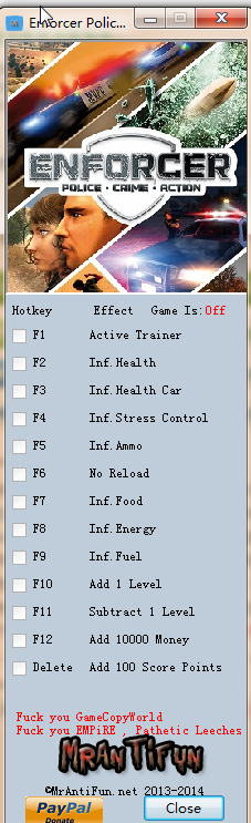 其实小伙伴们在以前什么工具都不用时总是感觉执法者里面难度太大,那么今天就给大家介绍执法者十二项修改器,它能让你在拥有无限生命的基础上,具备无限子弹,无限能源等等的功能,使你在游戏中的难度降低很多,而且这样还能更好在游戏里面玩耍!