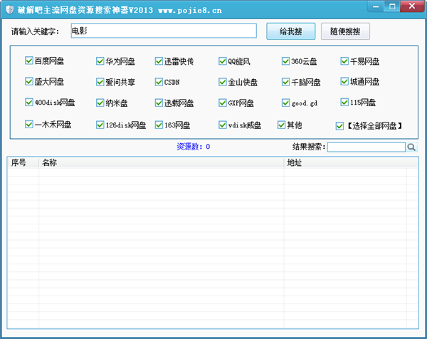 勾选要搜索的网盘,然后输入要搜索的内容点击【给我搜】按钮,就可以得到搜索结果。