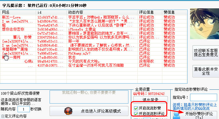 宇儿QQ空间动态秒赞秒评论系统怎么用