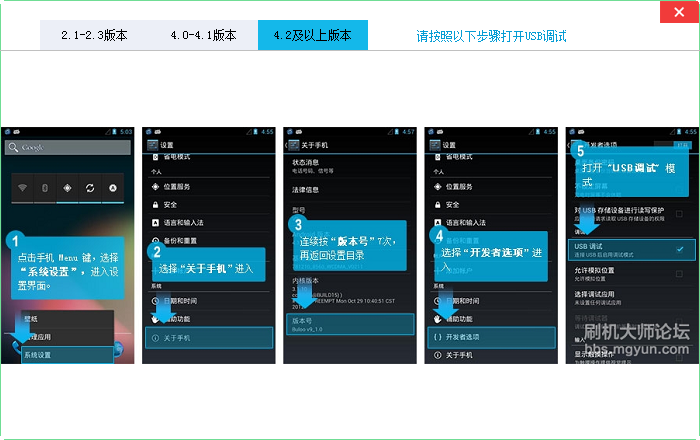 是一款针对安卓系统一键获取ROOT权限的软件,可在电脑端操作获取ROOT权限, 支持Android2.2­ 、Android2.3,4.0,4.1以及部分Android4.3手机。操作简单稳定。是100%安全的ROOT权限获取工具,完全不用担心root失败后机器变砖头。