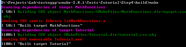 编译完成后,在build目录生成Tutorial.exe,运行Tutorial.exe 25就可以看到运行结果: