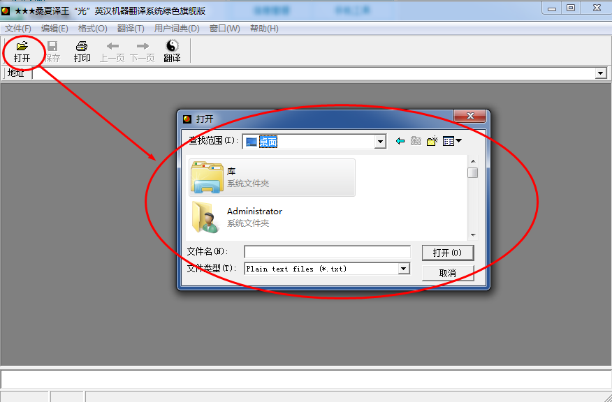 第一步:打开软件界面后,选择“打开”按钮,然后再选择需要翻译的文件。如下图所示: