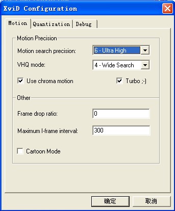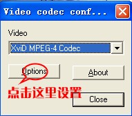 2、Codec编码方式选择XVID mpeg-4 codes。