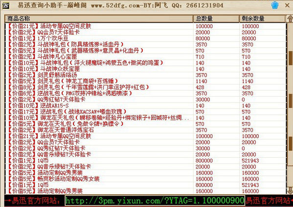 易迅查询小助手是一个绿色免费的易迅商品查询工具,可以用来查询易迅网一些特价商品的价格、总数量和剩余数量等信息。