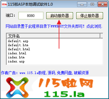 115啦ASP本地调试软件是一款绿色免费的由115啦网推出的ASP本地调试工具。软件功能强大,操作简单,可在本地快速调试asp代码,无需安装巨大臃肿的iis也能获得asp网页运行结果,是在本地架设、调试asp的好用工具。运行115.la_asp.exe 即可生成运行目录下WWWROOT目录,即可快速调试您手里的源码,简单快捷.软件会持续更新。