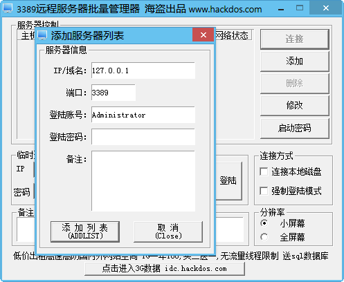 3389远程服务器批量管理器是一款免费软件,无需安装,软件采用高级加密算法,所保存的服务器数据不会被人破解。操作简洁方便,适合服务器管理员,网站站长使用。