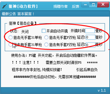 F5 运行切枪功能,同时隐藏功能界面(有的人可能怕别人知道自己用了模拟按键的脚本)