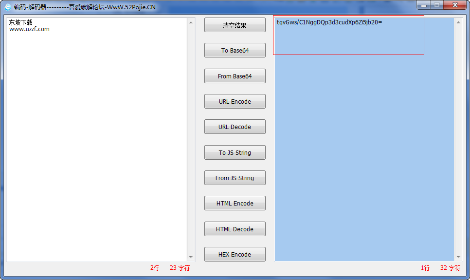 可以快速的对base64文本解码/对文本快速编码,软件小巧,界面简洁,网站采集经常需要用到的小工具,原来是在Fiddler上看到,不过每次要打开一次Fiddler才能使用,刚好在学习AAuto,就写了一个,挺简单的,没有什么技术含量,用得到的朋友再下载吧!