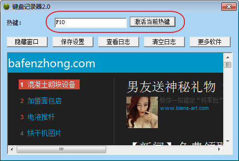 2、使用热键可以随时呼出、隐藏键盘记录器窗口