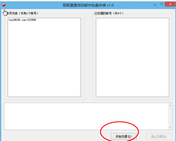 2、处理情况会实时显示到【已处理的账号】列表中。关闭软件时软件会自动把【已处理的账号】保存到软件目录下的相应的txt文件中。