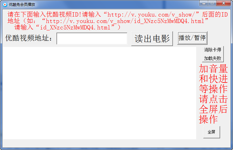 3、优酷是将VIP视频的地址复制到软件中,点击读出电影即可。