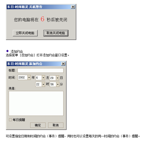 今天小编给大家介绍一款时间提醒类的软件。这款软件叫做东日—时间精灵(Sunny TimeSprite )。东日—时间精灵(Sunny TimeSprite )可设置指定日期和时间的约会(事务)提醒,同时也可以设置每天的同一时间的约会(事务)提醒。下面小编给大家介绍一下这款软件。