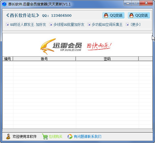 酋长迅雷会员搜索器为大家每天更新大量的迅雷白金会员账号,通过本工具能够直接获得各种免费的迅雷会员,对于经常在网络上下载各种大型文件的朋友来说,还是非常实用的。