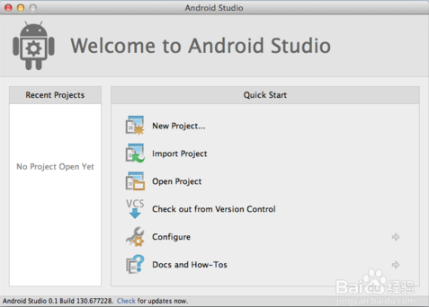 如果没有Grade build文件,也是可以将普通的安卓项目导入到Android Studio中,它会用现有的Ant build.但为了更好地使用之后的功能和充分使用构建变量,还是强烈地建议先从ADT插件中生成Gradle文件再导入Android Studio。