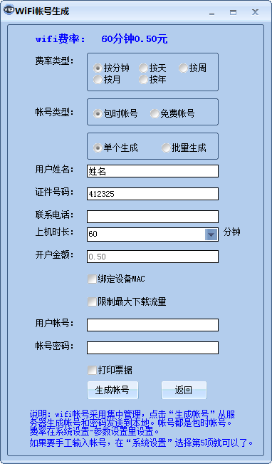 5.帐号生成时,姓名和证件号码默认自动填写.
