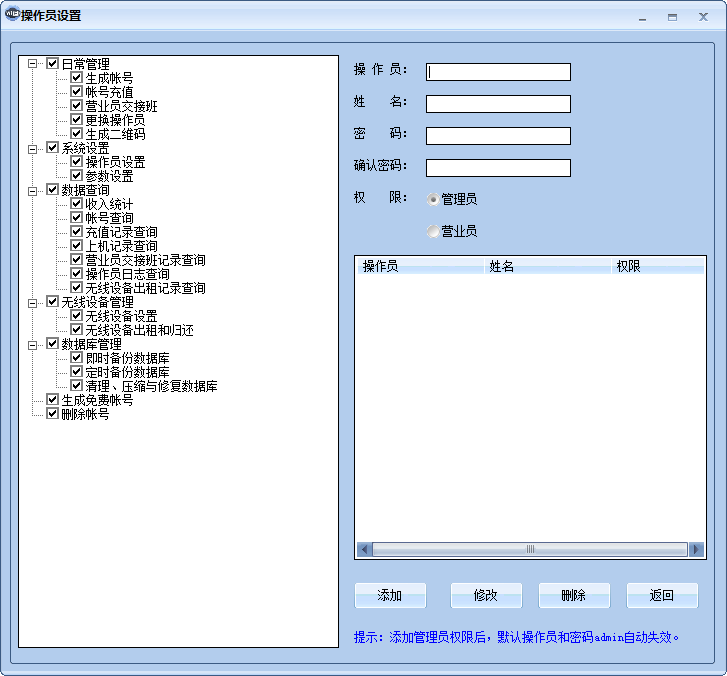 软件功能强大,可以实现为不同用户发送不同的账号、密码,可以实现各种管理的需要,让无线路由器变得可以控制,比如一些客人自带的智能手机,笔记本,平板电脑等无线设备想连接无线线路上网,设备连到无线路由信号,打开网页就会提示输入账号、密码,顾客将获得的账号、密码输入,就可以上网了。