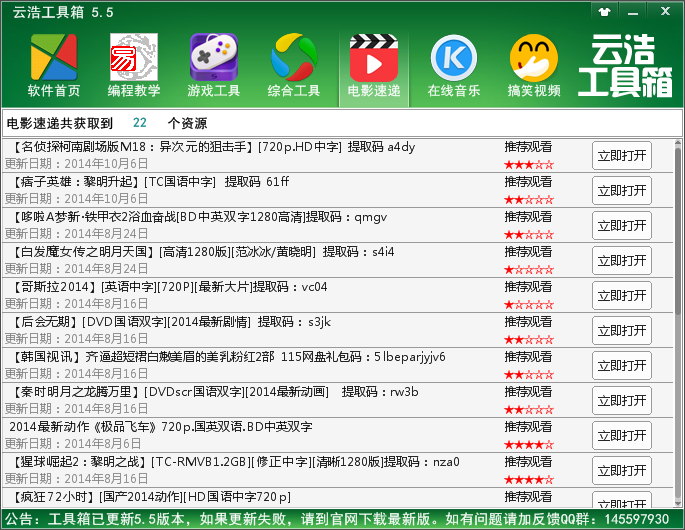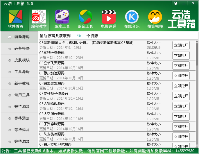 软件功能强大,提供编程教学、CF辅助工具、热门游戏工具、电脑技术、电影搞笑视频分享等功能。