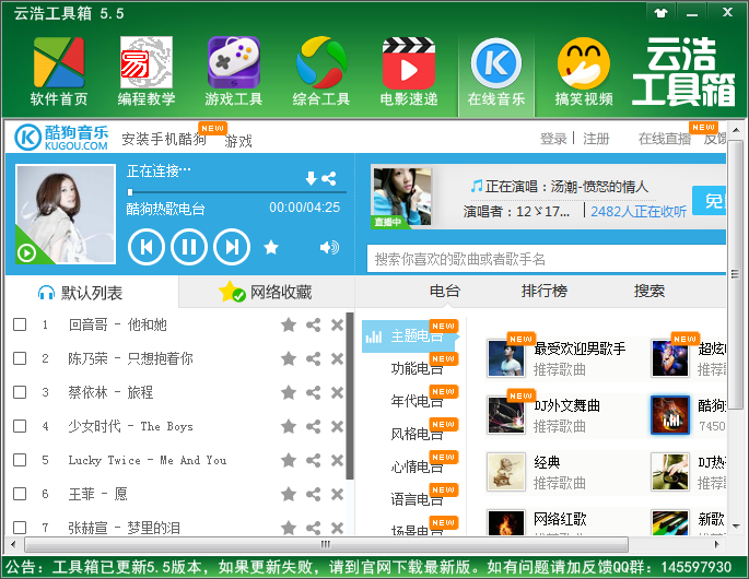 云浩工具箱是一款绿色免费的综合的网络工具箱。此程序已经完成了精简、去广告等操作,程序干净整洁,有需要的快来下载吧!