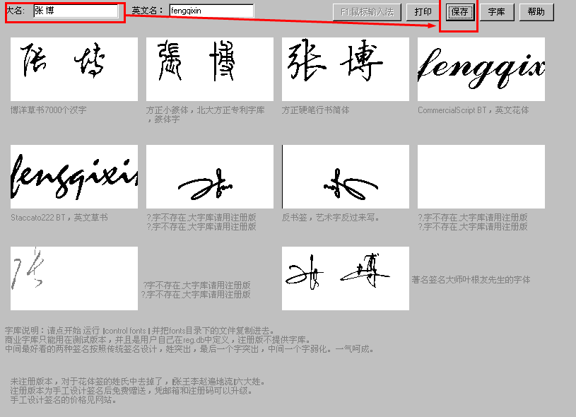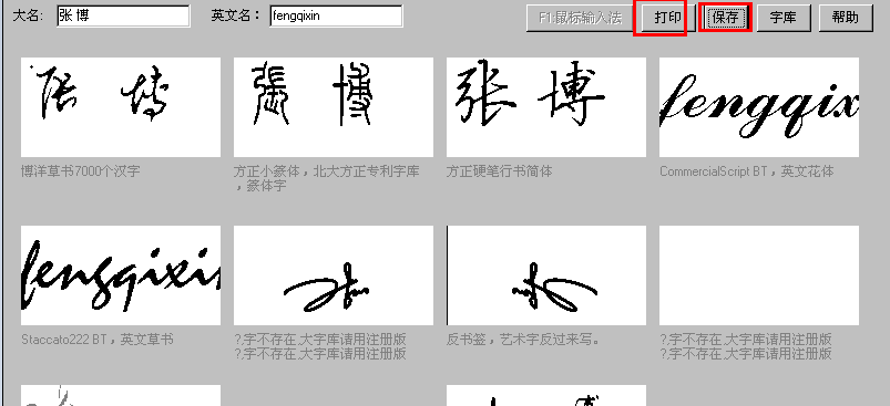 第三步:艺术签名选择好后,用户也可以选择保存或者是打印,都可以。