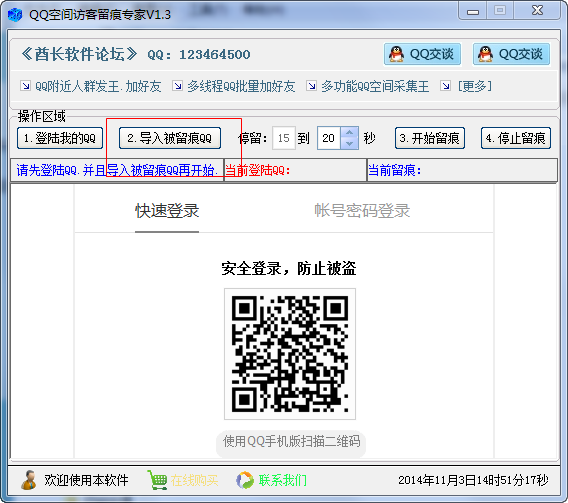 酋长QQ空间访客留痕专家是一款便捷实用的QQ空间访问留痕工具,使用者通过本工具能够不断的去访问别人的QQ空间,以达到让对方回访的目的,是做各种推广营销的好工具。