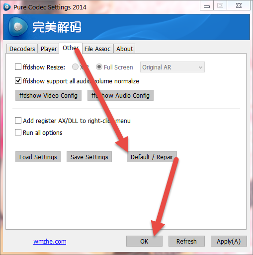 恢复预设解码设定