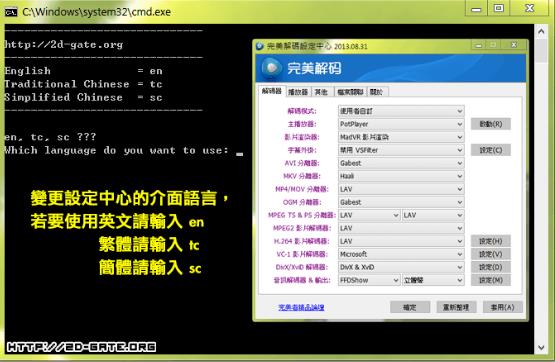 用于变更“完美解码设置中心(PureSet.exe)”所使用的语言
