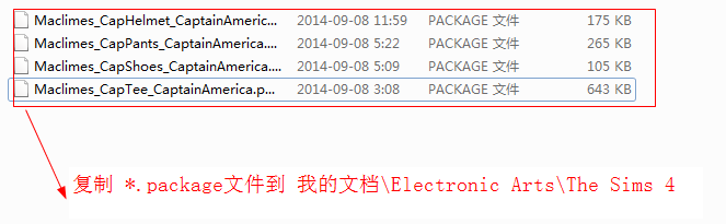 2、复制 *.package文件到 我的文档\Electronic Arts\The Sims 4\Mods
