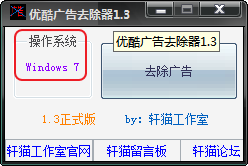 优酷广告去除器是一款绿色免费的由轩猫工作室制作的优酷广告去除工具。软件功能强大,可以帮助用户跳过优酷广告的工具,有了这款优酷去除广告软件,用户再也不用为优酷播放前那段烦人的广告而懊恼了,可以安心开心的体验电影带给我们的视觉震撼了。