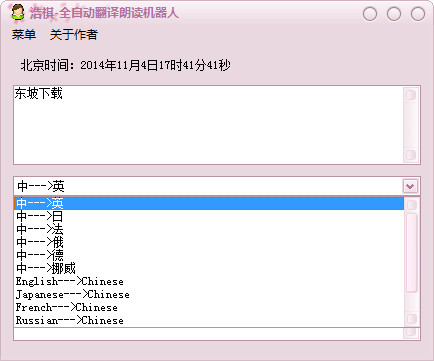 浩祺全自动翻译朗读机器人是一款非常强大的自动翻译软件,软件为绿色版本,小巧易用,支持语音输入的在线翻译朗读器,您可以使用语音输入要翻译的文字,工具不仅可以把它翻译出来,还能用语音朗读翻译后的词句。对于想学习国语外的其他语言的同学来说非常不错。
