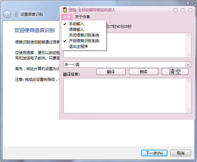 全自动翻译朗读软件,使用简单,采用傻瓜式操作,直接输入法中文或者其他语言,相应的翻译结果就会自动出现,此软件可以代替笔和纸,可以帮助您输入相应的文字,软件即可自动完成翻译并朗读出来,可用于英语学习。非常的便捷实用。
