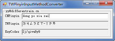 TW拼音输入法键码转换器是一款用于拼音输入法的键码转换工具,工具为绿色版本,无需安装即可使用,主要功能为可以帮助您将拼音转为Tw拼音键码,方便用来输入字符,非常的实用。