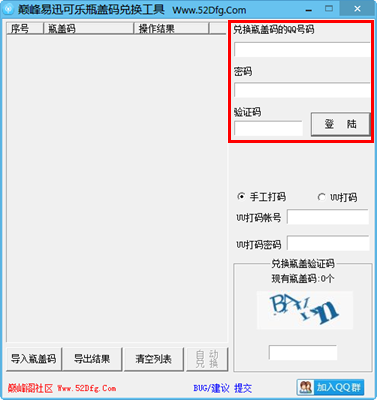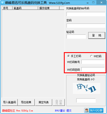 巅峰易迅可乐瓶盖码兑换工具是一个绿色免费的可口可乐瓶盖码自动兑换软件,软件支持导入多个瓶盖码进行批量兑换,支持UU云打码,可以帮用户自动兑换瓶盖码,方便快捷!